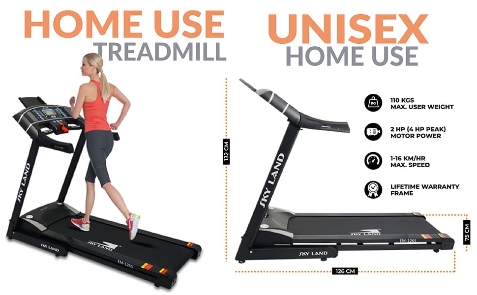 The SkyLand EM-1265 Treadmill offers a reliable and convenient solution for maintaining fitness from home. Built with a strong frame and durable motor, the treadmill delivers smooth performance for walking, jogging, and running workouts.