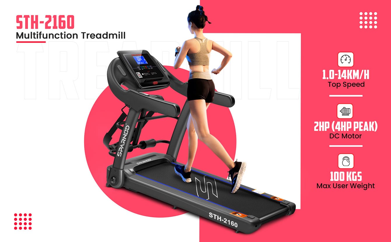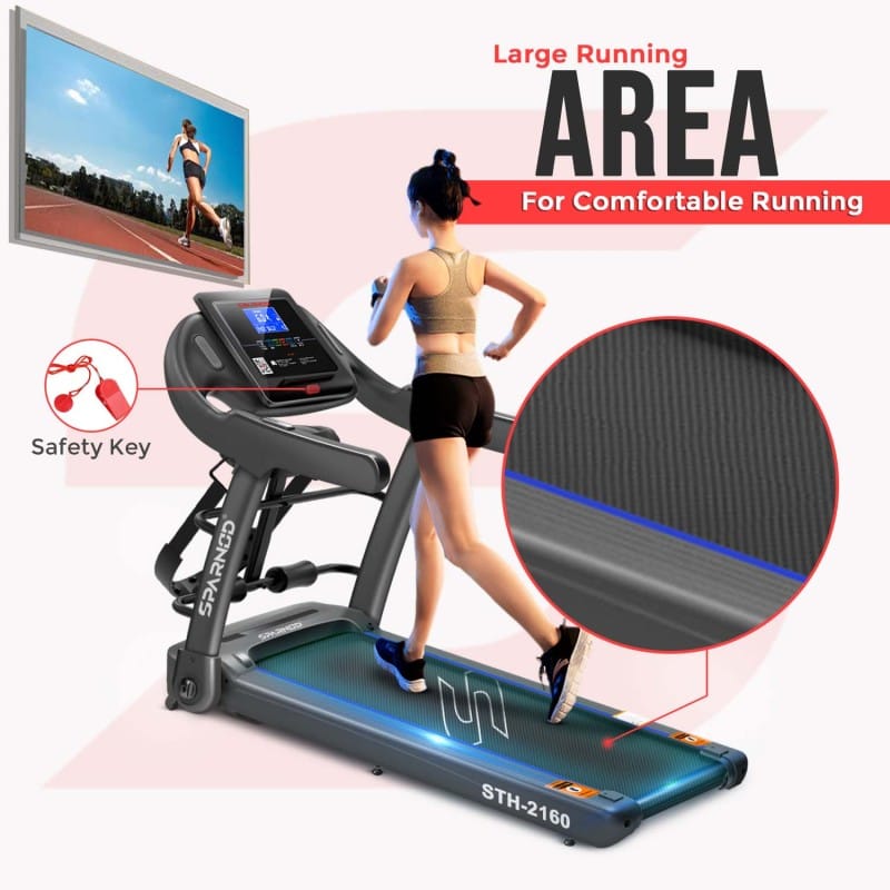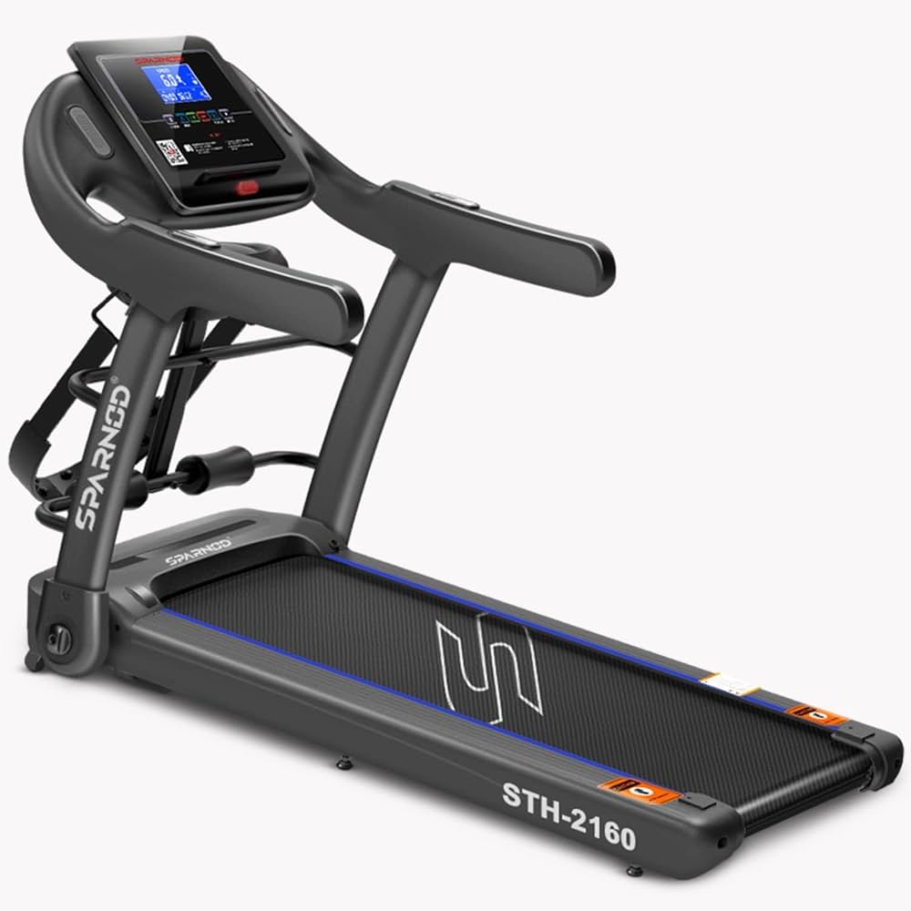 Categories: Cardio Equipment Packages, COMMERCIAL USE TREADMILLS, EXERCISE & FITNESS, HOME USE TREADMILLS, Landing Page Treadmill Collection, TREADMILLS Tag: Sparnod STH-2160 Treadmill Brand: Sparnod Fitness