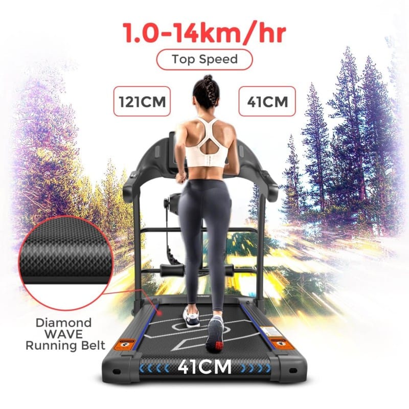 • Speed range 1–12 km/h for walking and jogging